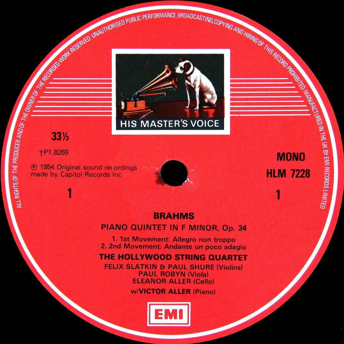 J. BRAHMS: Streichquartett op. 51, Nr. 2 + A. SCHÖNBERG: Verklärte Nacht (Hollywood Strings Quartet) (EMI) (1950) (1CD)