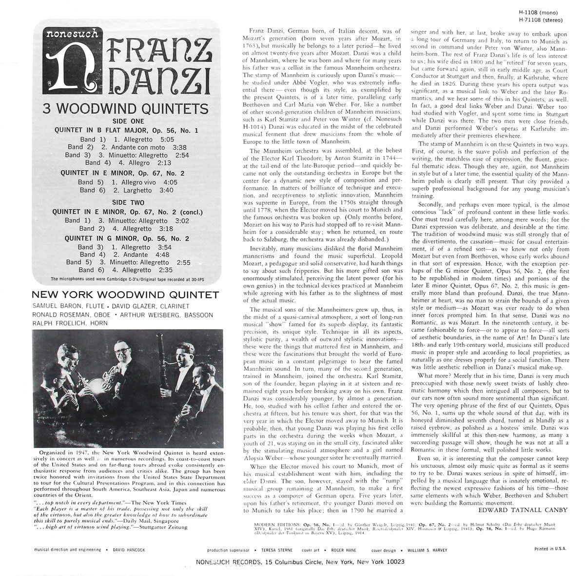 F. DANZI: Bläserquintette op.56,1 + op.67,2 + op.56,2 (New York Woodwind Quintet) (Nonesuch) (1966) (1CD)