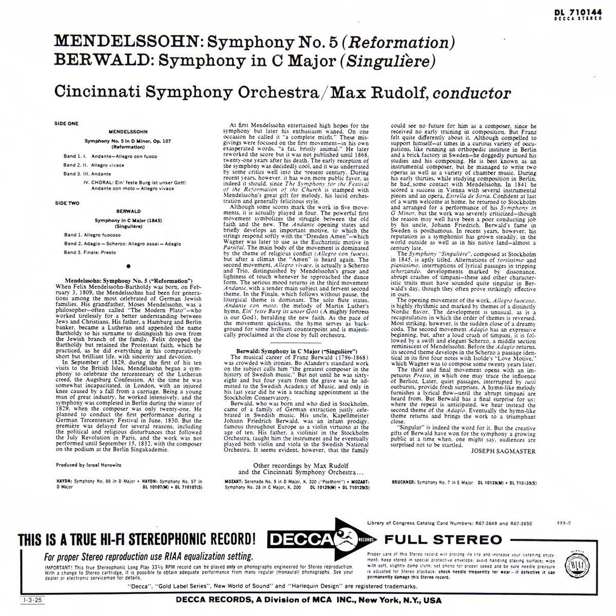 Eine der raren und nicht auf CD veröffentlichten Aufnahmen mit der Sopranistin Therese Stich-Randall. Die für diese LP-Ausgabe stereophonisierte Fassung wurde mit klanglichem Gewinn wieder in das originale Mono zurückversetzt.