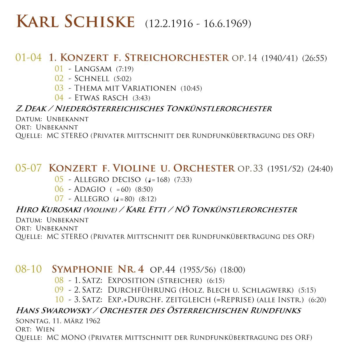 Hier nochmals die drei Karl Schiske LP-to-CD Transfers - mit mehr Infos und Hörbeispielen: