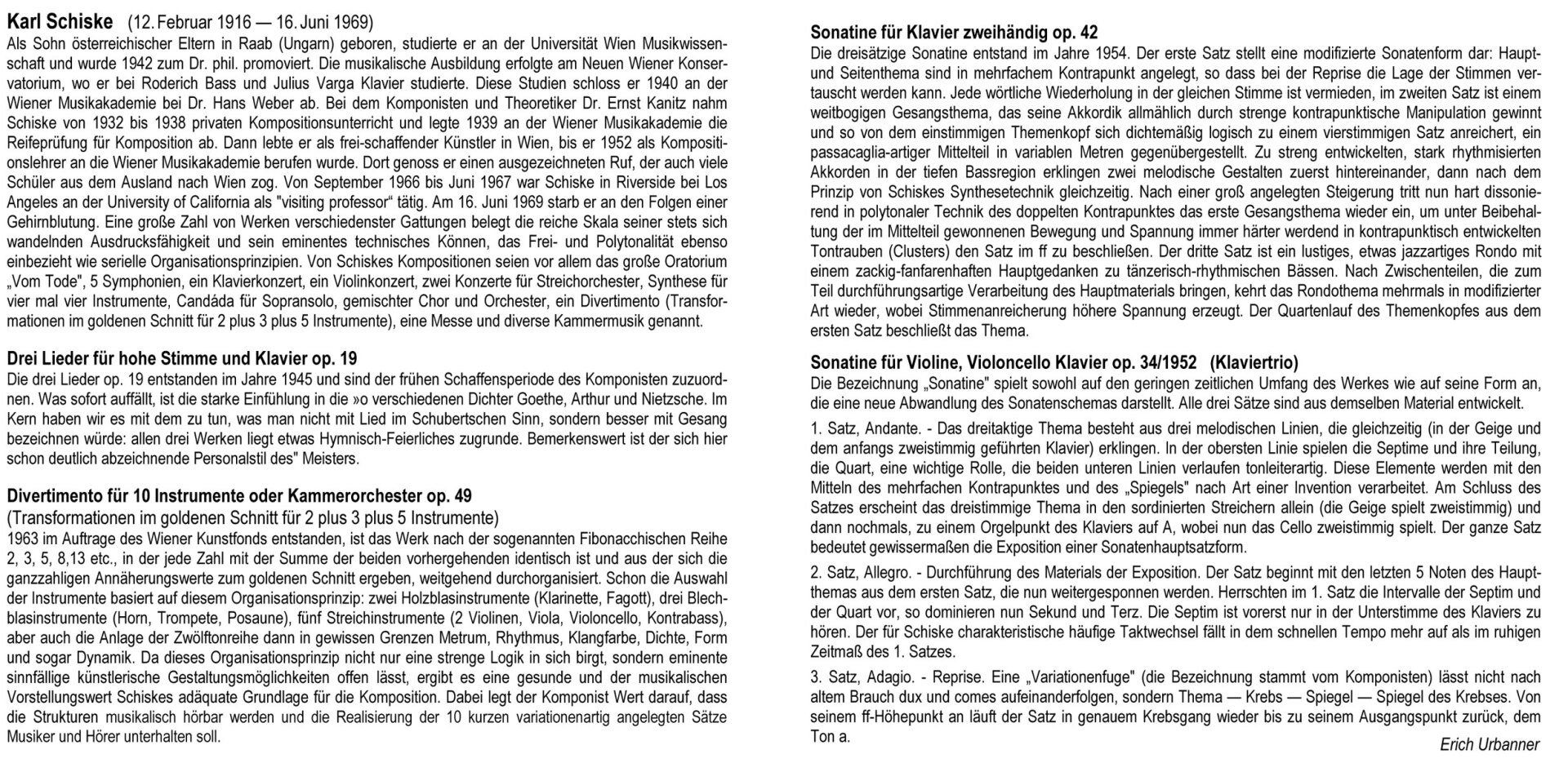 Sehr empfehlenswert ist übrigens die Lektüre der Analyse zum Divertimento op.49 mit umfassenderen Gedanken in dem Büchlein „Karl Schiske“ von Karlheinz Roschitz - nach einer Studie von Günter Kahowez.