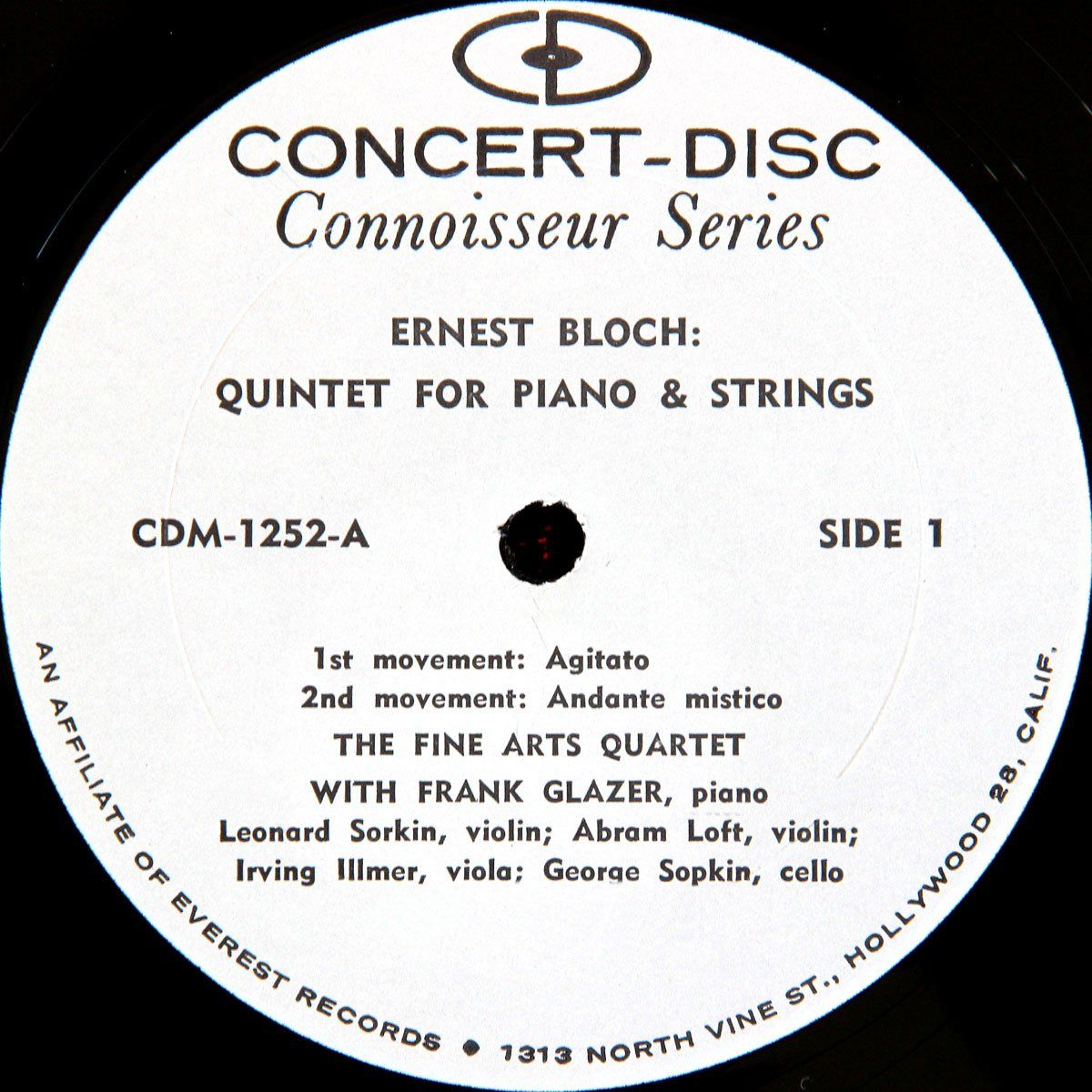 E. BLOCH: Klavierquintett (Glazer / Fine Arts Quartet) (Concert-Disc) (1972) (1CD)