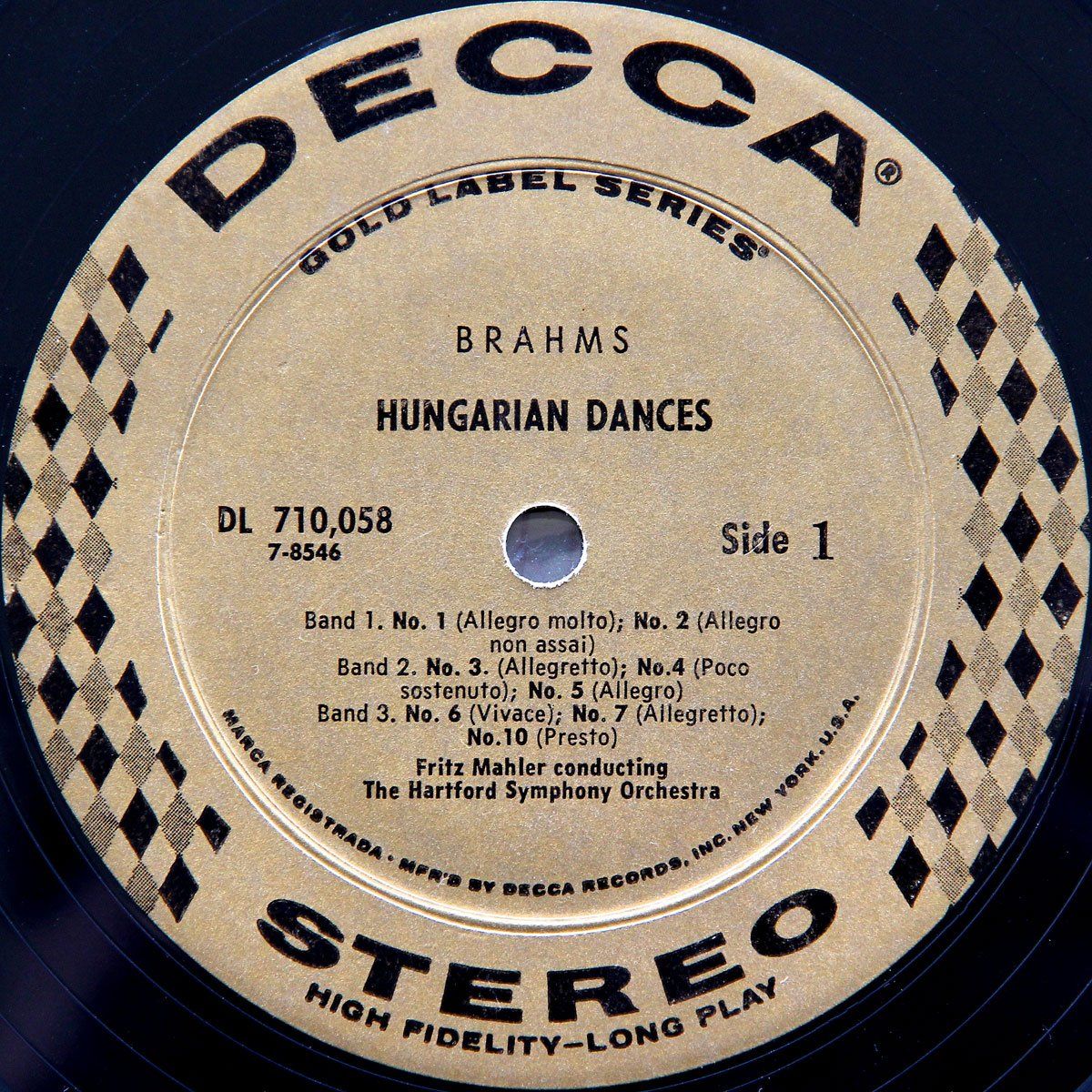 Fritz Mahler und das Hartford Sympony Orchester hat bei der amerikanischen Decca 19 der 21 Ungarischen Tänze von Johannes Brahms eingespielt. Leider ist diese kraft- und phantasievolle überhaupt nicht merh zu haben und auch nie auf CD erschienen – obwohl klanglich hervorragende Arbeit geleistet wurde. Das Orchester spielt virtuios und farbig und der Dirigent Fritz Mahler - ein entdeckenswerter Geheimtipp - hat mit einer sehnigen, glühenden und ausgeteift klassische Lesart eine Referenzaufnahme geschaffen. Der LP-to-CD Transfer ist gut, aber die LP-Quelle wies doch teilweise deutliche Verzerrungen gegen LP-Ende auf, sodass bei an sich gutem Klang sicher nicht die Qualität erreicht werden konnte, die bei einer Überspielung vom Masterband zu erzielen wäre. Eine wichtige Platte, die unbedingt der Beachtung wert ist!